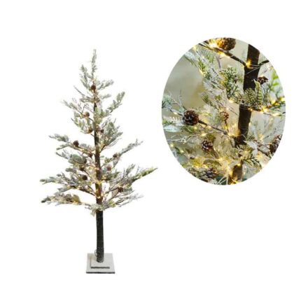 Εντυπωσιακό χριστουγεννιάτικο δέντρο ύψους 1,30m με χιονισμένο εφέ, κουκουνάρια και ενσωματωμένο φωτισμό LED. Είναι αδιάβροχο και κατάλληλο για χρήση σε