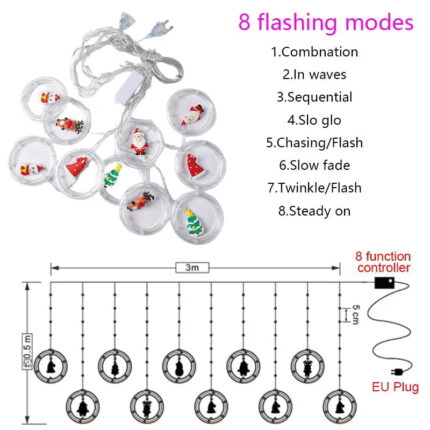 Χριστουγεννιάτικα φωτάκια κουρτίνα με φιγούρες ψυχρό φως 3m 10L – Christmas deco lights curtain Τύπος λαμπτήρα: LED Χρώμα λάμπας: ψυχρό