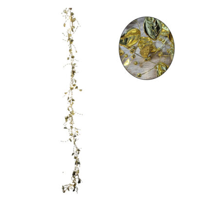 Χριστουγεννιάτικη Φωτιζόμενη Χρυσή Γιρλάντα με Φύλλα και Πέρλες 120cm – Christmas Lighted Garland with Leaves and Pearls