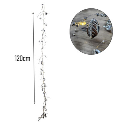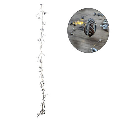 Χριστουγεννιάτικη Φωτιζόμενη Ασημένια Γιρλάντα με Φύλλα και Πέρλες 120cm – Christmas Lighted Garland with Leaves and Pearls