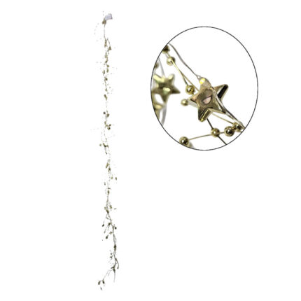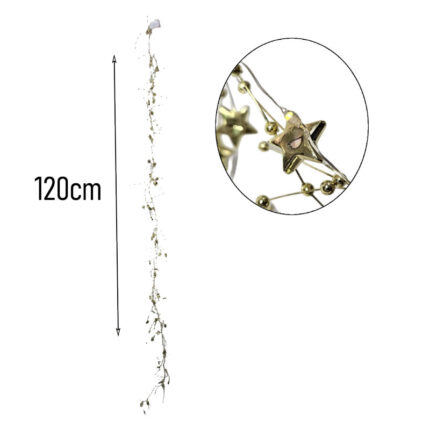 Χριστουγεννιάτικη Φωτιζόμενη Χρυσή Γιρλάντα με Αστέρια και Πέρλες 120cm – Christmas Lighted Garland with Stars and Pearls