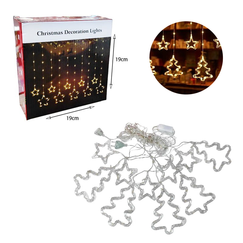 Χριστουγεννιάτικα Φωτάκια Κουρτίνα Δεντράκια & Αστεράκια Θερμό Χρώμα 10L 3M – Christmas decoration lights warm light