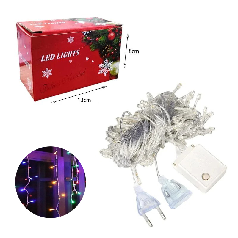 Χριστουγεννιάτικα Λαμπάκια Κουρτίνα LED 100L Πολύχρωμο Χρώμα RGB με Διαφανές Καλώδιο 3m 40x50x60cm – Christmas lights LED RGB