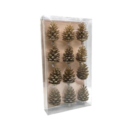 Σετ Χριστουγεννιάτικα Κουκουνάρια με Σκοινί για το Δέντρο 12τμχ – Christmas Pine Cones for Tree 12pcs